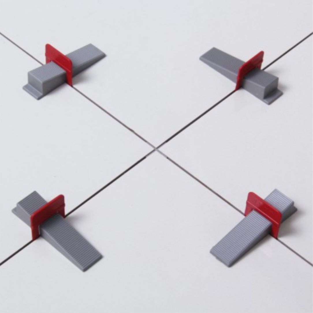 Sistema de nivelamento de pisos e revestimentos. Ideal para assentamento de porcelanatos, garante o nivelamento correto entre as peças e minimiza o tempo de aplicação. O Sistema de Nivelamento completo necessita de Espaçador, cunha e alicate para aplicação.