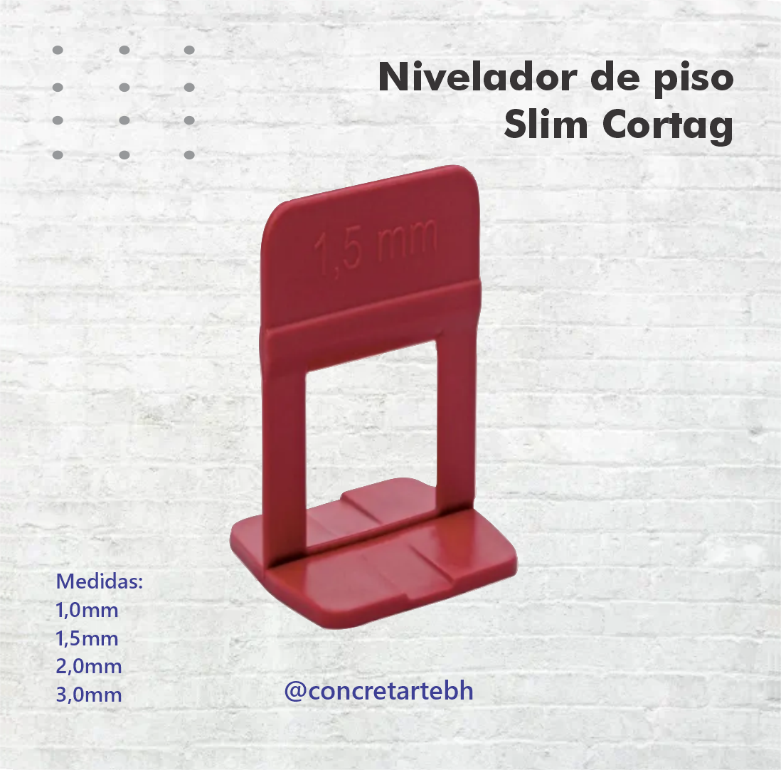 Sistema de nivelamento de pisos e revestimentos. Ideal para assentamento de porcelanatos, garante o nivelamento correto entre as peças e minimiza o tempo de aplicação. O Sistema de Nivelamento completo necessita de Espaçador, cunha e alicate para aplicação.
